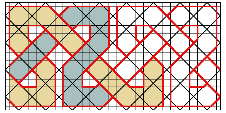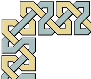 | Die Konstruktion dieses Flechtbands baut auf dem Maurischen Netz mit seiner abwechselnden Teilung auf. | ||