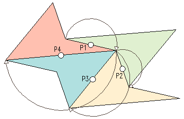 Seitenmitte P1 im Winkel von 180° drehgespiegelt und ergibt das grüne