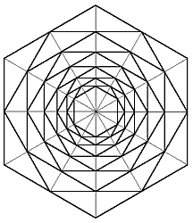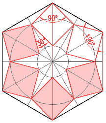 Die Verbindung der Seitenmitten ergibt jeweils wieder Sechsecke, die wechselweise um 30 Grad gedreht sind. | ![]() |