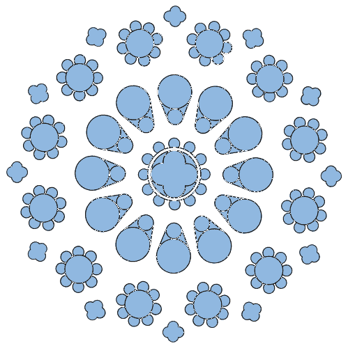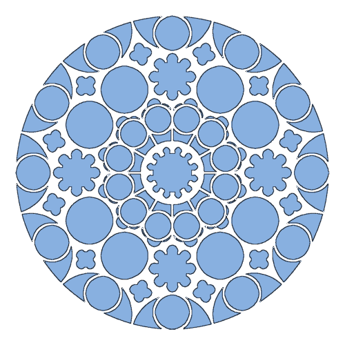 Links oben Skizzen zu Flächenornamenten, die auf Kreisen aufbauen. |