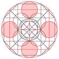 Der Umkreis tangiert die äußeren Kreise in den Quadrantenpunkten. |