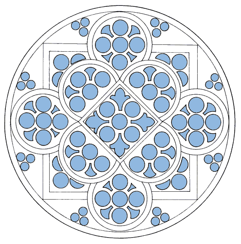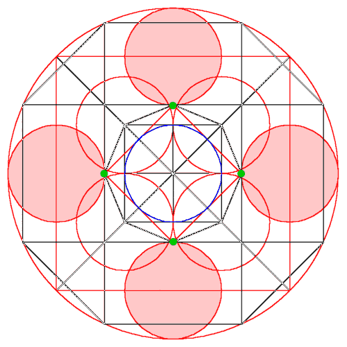 Die in die Zwickel gesetzten Dreipässe ergeben ein reguläres Achteck. |