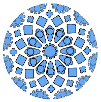 gotischer Zeit kennzeichnend war. Das Maßwerk verläuft meist strahlenförmig, vom Kreiszentrum aus als mehr oder weniger reich durch Binnenformen gegliederte »Arkaden« oder Lanzetten, die allseitig nach außen zum Kreisrand führen. Es gibt aber auch