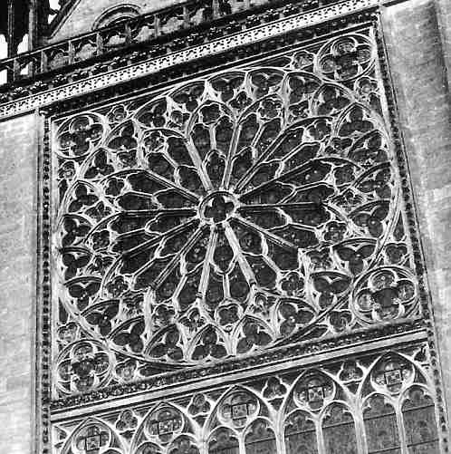 Die Rosen mit dem köstlichsten Maßwerk entstanden in der Mitte des 13. Jh. Die Rosen von Paris wurden Modell für eine Anzahl anderer Kirchen und Kathedralen - besonders die Südfenster, wie z.B. hier in Sées (rechts). |